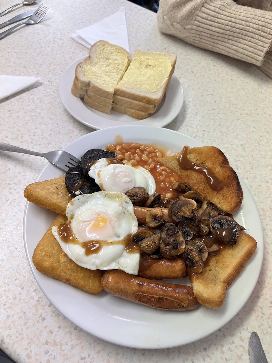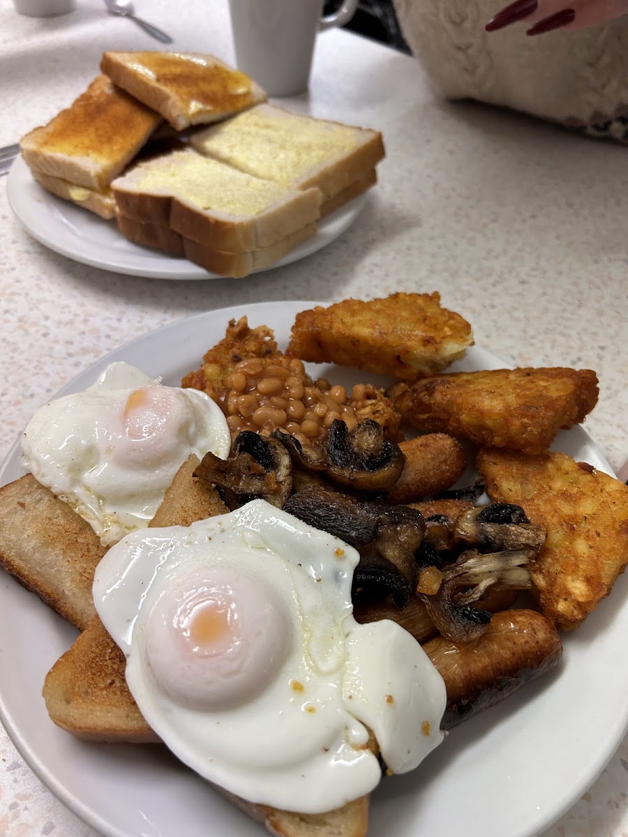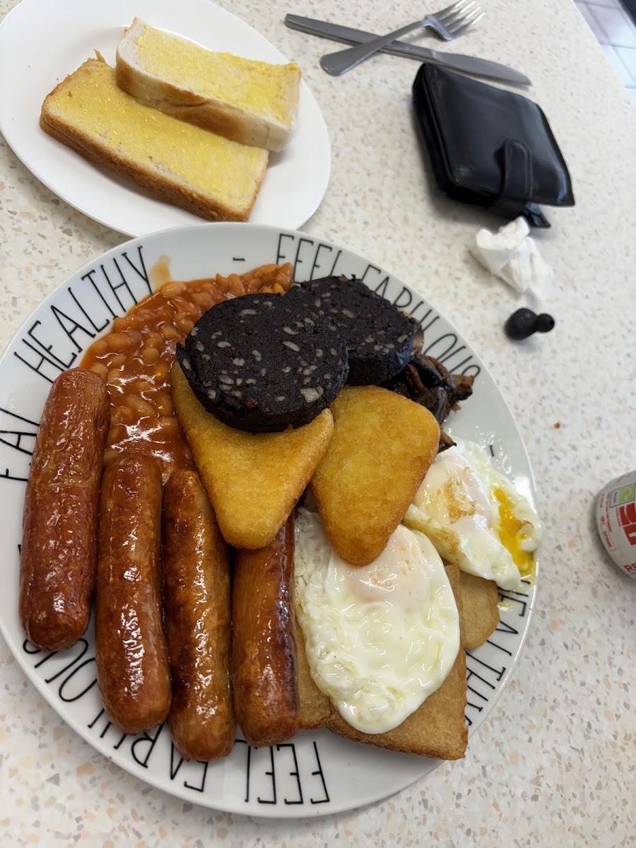 Now, let’s talk about the real star of the show: the food. The menu is a glorious homage to the traditional British breakfast, brimming with flavor and generous portions. The popular Number 3 Breakfast, featuring 2 bacon, 2 sausages, 2 eggs, 2 hash browns, black pudding, fried bread, and a symphony of beans and tomatoes, is a feast that will leave you satisfied without breaking the bank—at just £9, it's a fantastic deal! Customers rave about its rich, comforting qualities, and it’s no wonder why this dish has become a local favorite.